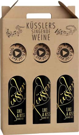 Dieses Weingeschenk ist ein richtiger Hinhörer! Nicht nur die Cuvée aus den Rebsorten Blauburger und Zweigelt überzeugt - auch der nachhaltige Geschenkkarton. Der Hit ist das auf der Flasche direkt befindliche Musikmodul mit einem Ständchen für den besten Papa. Dies schafft eine feierliche Stimmung von der ersten Sekunde an. Lassen Sie all Ihre Sinne ansprechen mit diesem besonderen Geschenk. Produktdetails anzeigen →